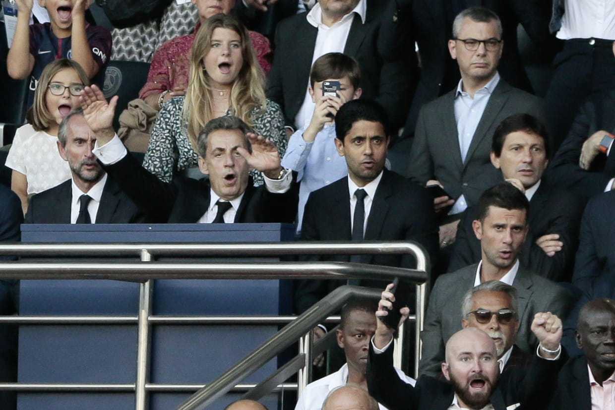 Nicolas Sarkozy dans les gradins du Parc des Princes le 14 septembre pour le match PSG-Strasbourg.