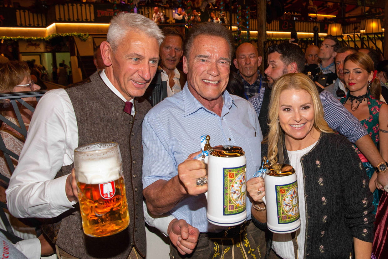 Arnold Schwarzenegger  et sa compagne Heather Miligan à l'Oktoberfest, (la fête de l'automne ou fête de la bière) à Munich en Allemagne le 22 septembre 2019.