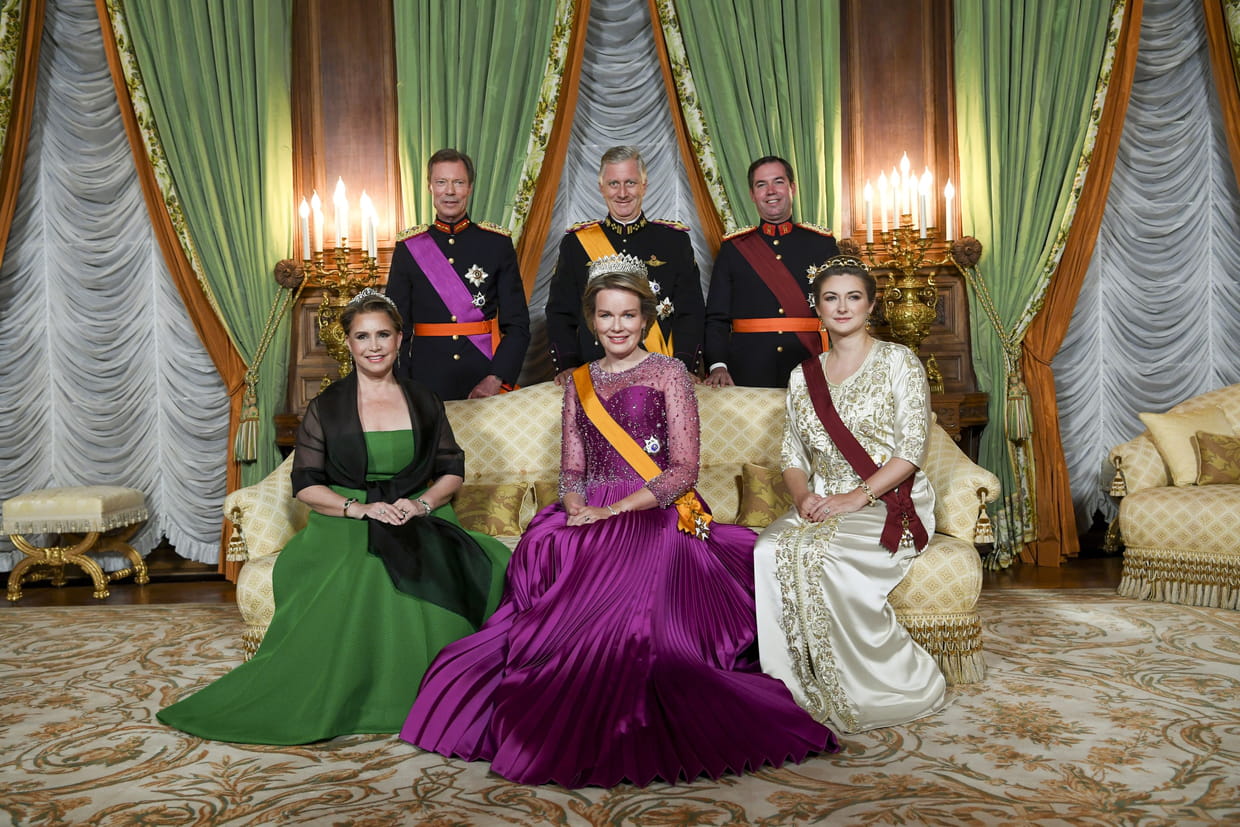 Le roi Philippe de Belgique et la reine Mathilde au Luxembourg, reçu par le Grand-duc Henri et sa femme Maria Teresa Mestre, et leur fils Guillaume. Le 15 octobre.