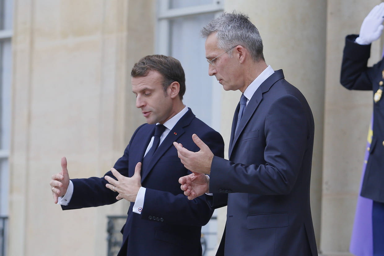 Emmanuel Macron et Jens Stoltenberg (homme politique norvégien et Secrétaire Général de l'OTAN) à Paris, le 28 novembre.