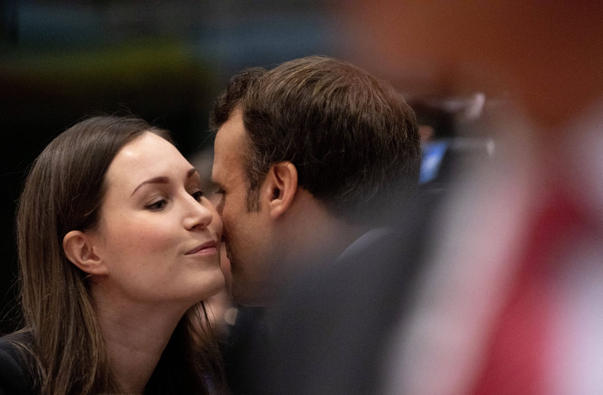Sanna Marin, Première ministre de la Finlande et Emmanuel Macron, lors d'une réunion pour l'Union Européenne à Bruxelles, le 13 décembre.