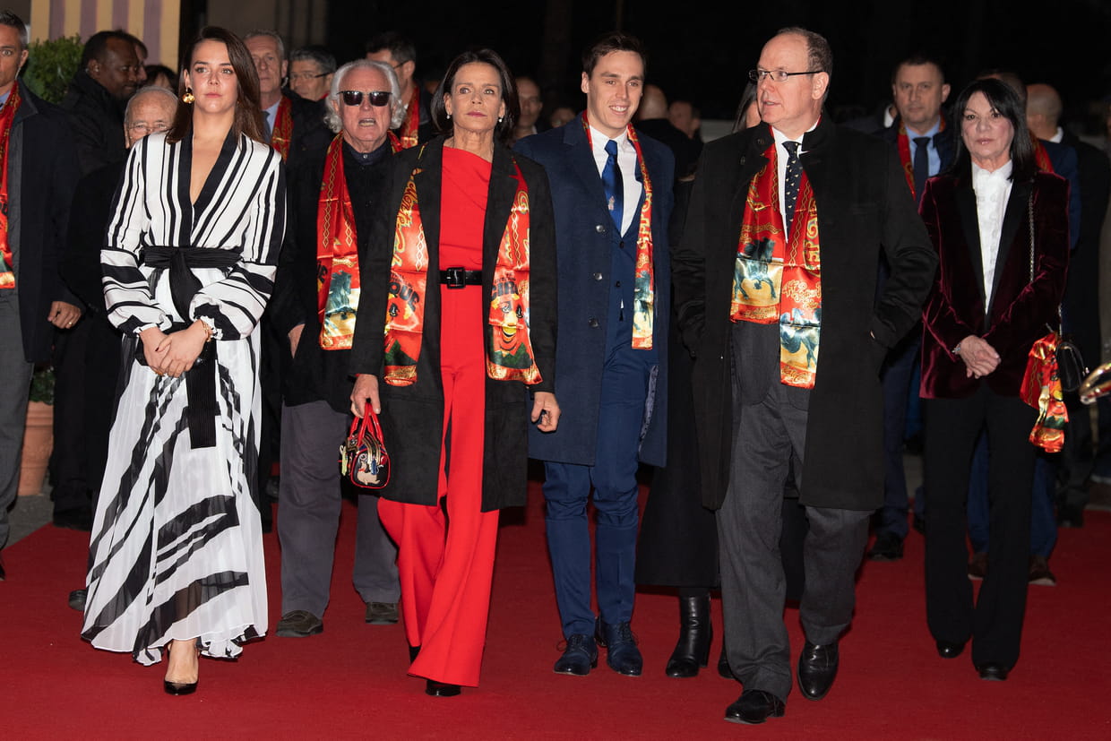 Albert de Monaco, Stéphanie de Monaco et ses deux enfants Louis et Pauline Ducruet lors du lancement du 44e Festival international du cirque de Monte-Carlo, le 16 janvier.