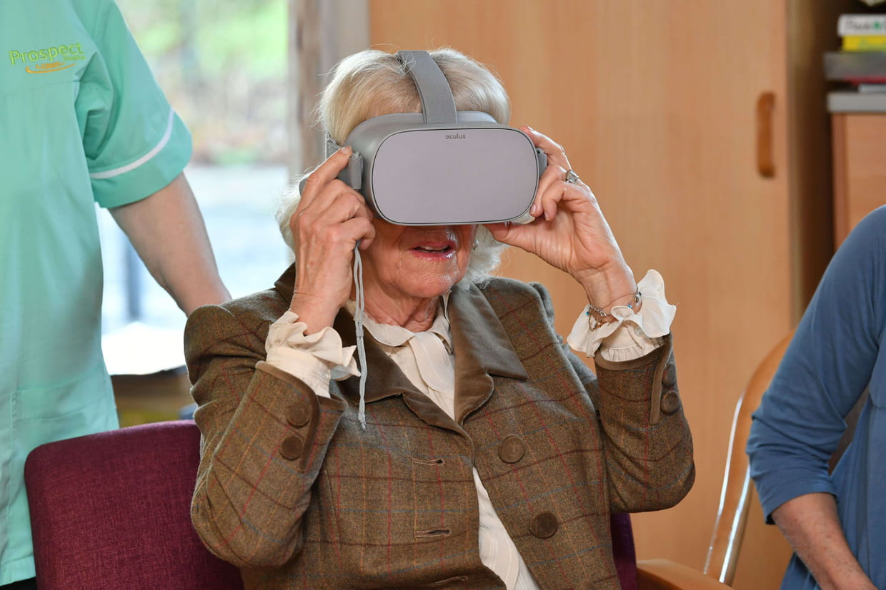 Camila Parker Bowles s'essaie à la réalité virtuelle à Swindon, au Royaume-Uni, le 20 janvier.