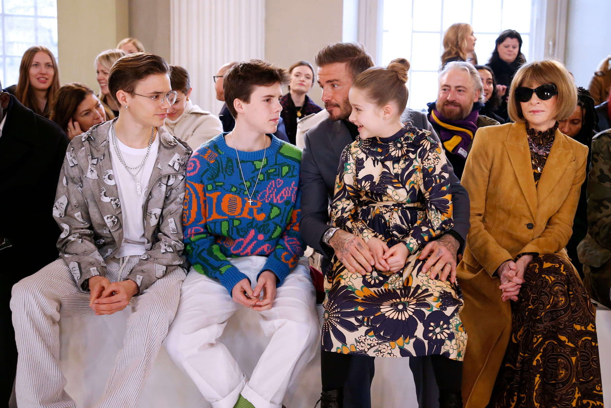 La famille Beckham (presque au complet) au côté d'Anna Wintour lors du défilé Victoria Beckham pour la Fashion Week de New York, le 16 février.