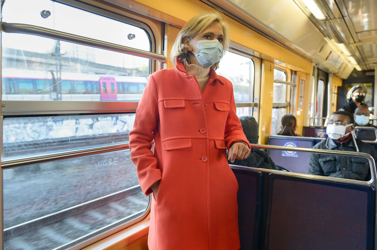 Valérie Pécresse, présidente de la région Île-de-France, dans le RER B en direction d'Aubervilliers, le 15 mai 2020.
