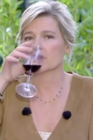 Anne-Elisabeth Lemoine boit du vin à la TV