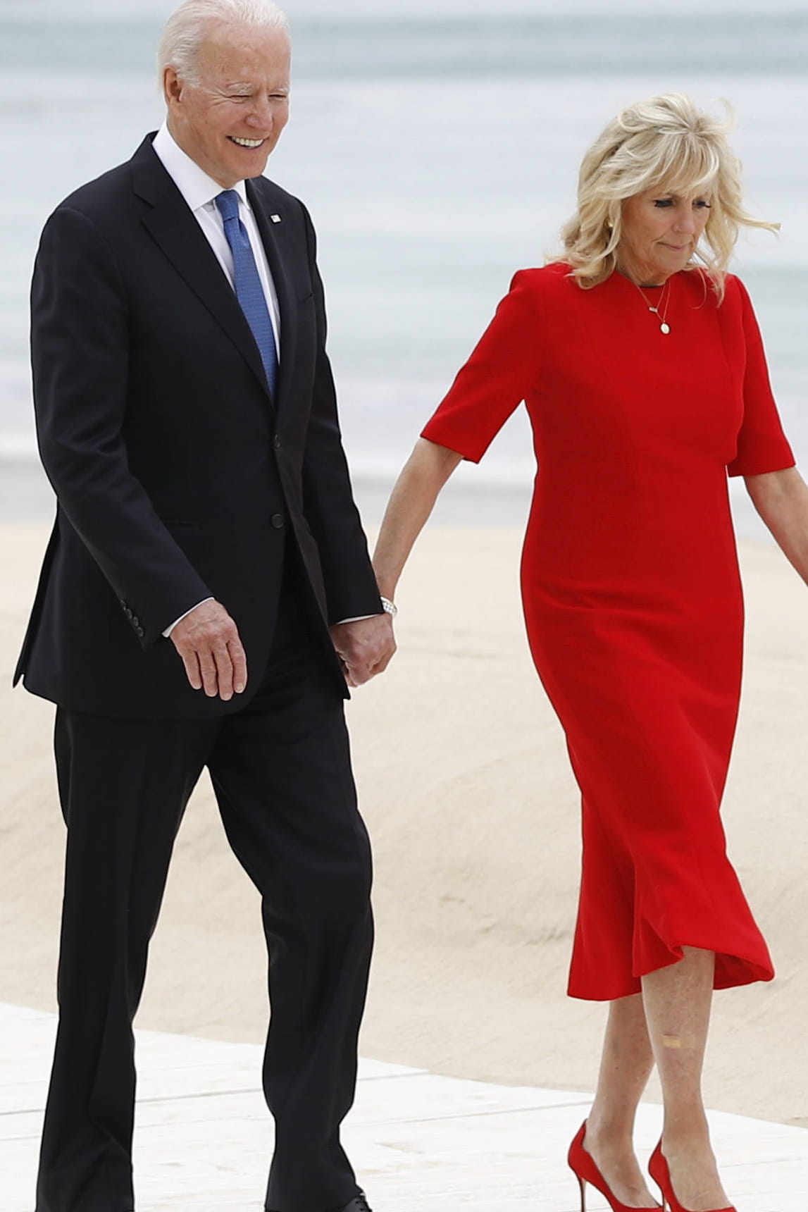 Goujaterie. Le 11 juin, les dirigeants du G7 ont diné à l'Eden Project avec la  Reine. L'usage veut que tous les invités soient assis avant que ne pénètre dans les lieux sa Gracieuse Majesté mais Flotus et Potus Biden n'ont pas respecté le protocole en arrivant 5 mn après la queen! Elisabeth II n'a pas eu l'air de leur en tenir rigueur et a multiplié les sourires en leur présence.