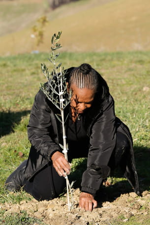 Christiane Taubira plante un olivier lors d'un déplacement dans l'Ariège le 6 janvier © J.M. HAEDRICH/SIPA