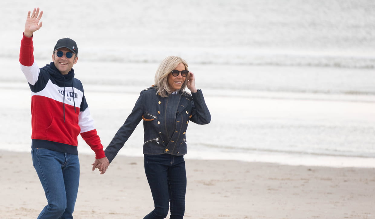 Emmanuel et Brigitte Macron, sur la plage du Touquet le 22 avril