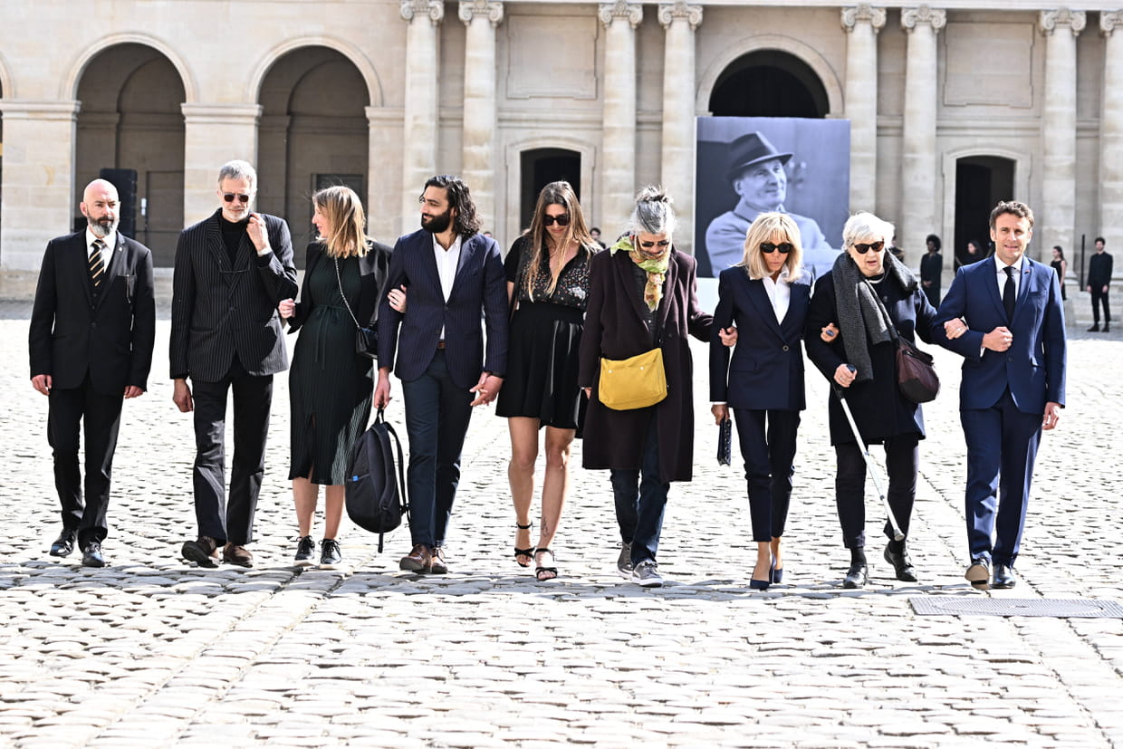 Hommage à Michel Bouquet aux Invalides, avec ses proches et les Macron, le 27 avril