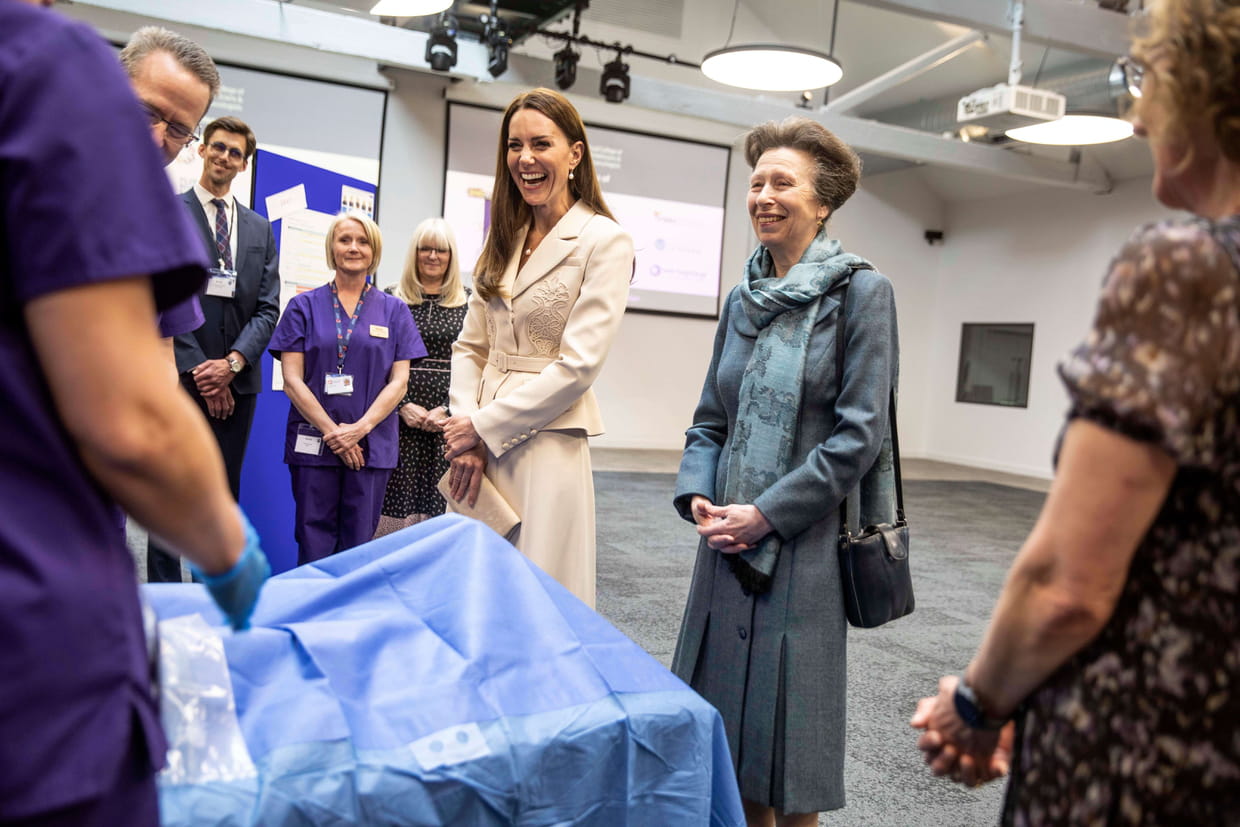 Kate Middleton et princesse Anne à Londres, au Royal College des obstétriciens et gynécologues, le 27 avril