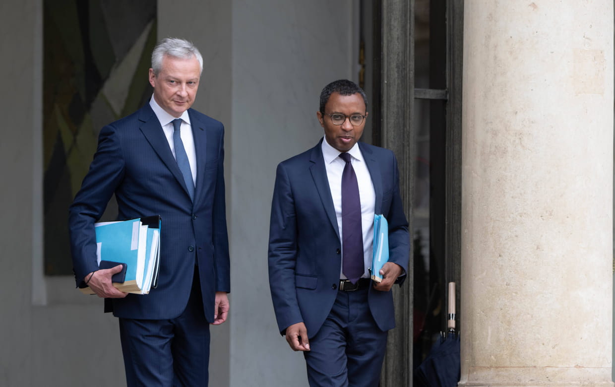 Bruno Le Maire, ministre de l'Economie, et Pap Ndiaye, ministre de l'Education, après le Conseil des Ministres le 23 mai