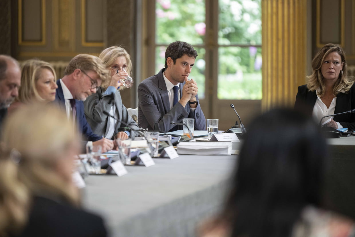 Gabriel Attal, ministre délégué aux Comptes publics, au premier Conseil des ministres du nouveau gouvernement, le 23 mai