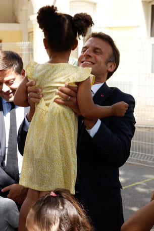 Emmanuel Macron visite une école primaire de Marseille, le 2 juin © Perez Jose/Splash News/ABACA