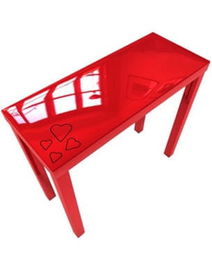 D'une brillance incomparable, cette console personnalisée avec des cœurs s'adapte à de nombreuses pièces. Cette console permet de mettre en avant de beaux objets, des bouquets de fleurs, etc. Elle peut également être utilisée en table d'appoint ou de chevet.