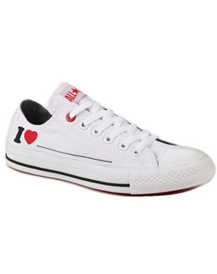 On affiche son amour sur ses chaussures avec ce nouveau modèle "I love..." signé Converse. Une façon originale d'aficher ses sentiments et de faire savoir que son coeur n'est plus à prendre. Ce modèle existe aussi en version montante.