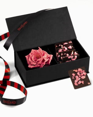 Hédiard réinvente les traditionnelles fleurs offertes lors de la Saint-Valentin et les pare d'une robe de cristal de sucre. Sélectionnées parmi les plus belles espèces, les roses et les violettes sont séchées puis pulvérisées de sucre naturel pour conserver leur fraîcheur avant d'être enrobées de sucre. Ce procédé permet de préserver la forme et le parfum originels des fleurs entières.