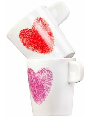 L'empreinte de l'amour se lit sur ces mugs ornés d'un cœur rouge ou fuchsia. Si la fête des amoureux ne vous inspire guère, marquez au moins le coup le temps du petit déjeuner avec des viennoiseries et une bonne tasse de café ou thé fumant. Votre intention sera certainement remarquée.
