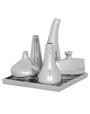 Plutôt original comme cadeau. Ce set proposé par Fly contient cinq vases de forme et de taille très différentes. Ceux-ci se placent ici et là pour une déco harmonieuse ou restent groupés pour un effet des plus singuliers. La finition argent ne vous enchante pas ? Ce modèle se décline également en blanc ou en noir, pour un intérieur des plus tendance. Que demander de plus ?