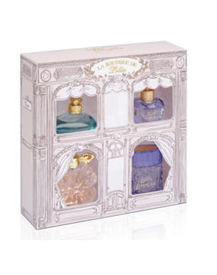 Dans l'esprit des vitrines de modistes d'autrefois, Ce coffret qui contient quatre miniatures des fragrances "le premier parfum", "Lolita Lempicka au masculin", "Si Lolita" et "L" s'affiche comme un véritable cadeau de collection pour les valentines qui aiment la marque.