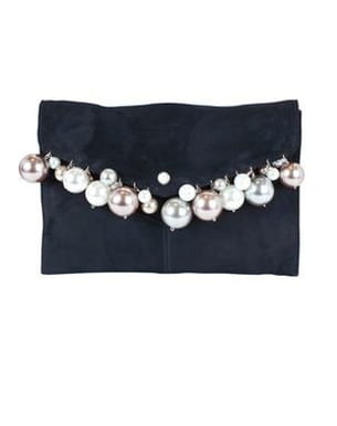 Une pochette en cuir velours et perles de Sonia Rykiel pour toutes les fashionistas ! On succombe pour l'alliance de la touche girly des perles et l'élégance du velours noir.