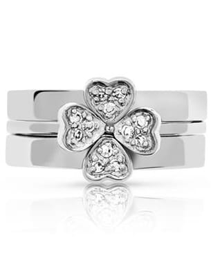 On aime cette bague sertie d'un trèfle à quatre feuilles qui se sépare en trois anneaux... On découvre alors trois bagues différentes en argent, serties de zirconias, à porter seules ou superposées au gré de ses envies.