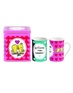 Set de 2 mugs porcelaine dans boîte métal "Lovers" de Derrière la porte