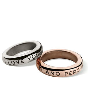 Une bague vaut mieux que mille mots, dit-on. Mais quand il s'agit d'une bague à message, c'est encore mieux ! Quoi de plus romantique que de graver sur des anneaux Dodo en or rose ou en argent une déclaration d'amour personnalisée ? "Toi, la seule et l'unique", "I love you", "Je t'aime parce que c'est toi". A vous de voir ce que vous inspire votre dulcinée !