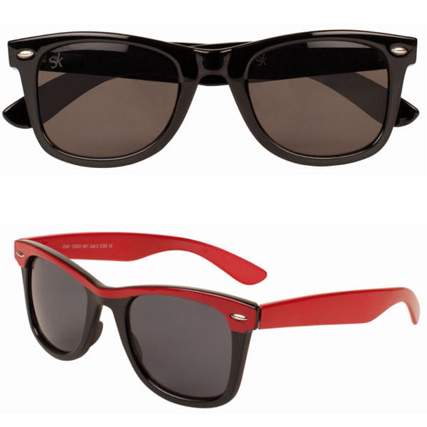 Vous aurez le choix entre les montures noires, classiques, ou ornées d'une bande rouge ou blanche.