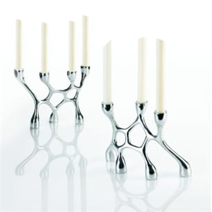 L'originalité de ce chandelier tient dans sa forme s'inspirant des cellules vivantes, mais aussi du fait qu'il peut s'utiliser aussi bien à l'endroit qu'à l'envers. Il peut ainsi porter avec esthétisme et originalité trois ou quatre bougies selon le sens choisi.