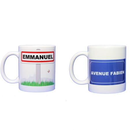Soyez original grâce à ces mugs personnalisés où votre prénom devient un panneau de rue ou de ville. Rejoignez les plus grandes personnalités de France qui ont reçu l'honneur de rester gravées à jamais dans les villes françaises...