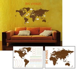 Grâce à ce kit, reconstituez vos périples autour de monde ! Stickers enlevables et lavables à l'eau. Utilisent de l'encre végétale. Contenu du pack : 2 planches de stickers comprenant une mappemonde, des flèches pour indiquer les trajets, des voitures, des bateaux et des paires de chaussures pour indiquer le type de moyen de transport utilisé.