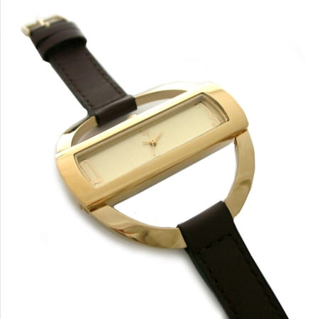 L'originalité est ce qui frappe en premier chez ce modèle d'une élégance certaine. Le bracelet cuir marron souligne le cadran champagne de cette montre, cassant avec l'esthétisme de la traditionnelle montre ronde.