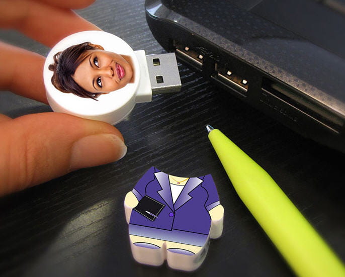 Une clé USB qui vous ressemble vraiment ! Choisissez parmi les 10 personnages créés spécialement pour vous et ajoutez une des vos photos de face et le tour est joué !