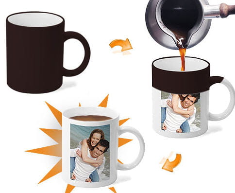 De couleur noire, le mug magique révèlera votre photo lorsque vous y verserez un liquide chaud.