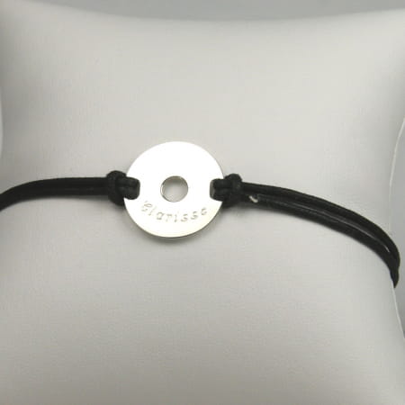 Il se compose d'un rond à graver en argent et d'un double lien en coton ciré noir.