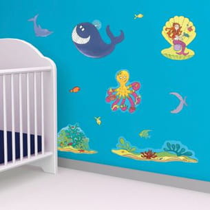 Baleine, pieuvre, petits poissons et même sirènes... Cette fois-ci, c'est une déco sous-marine qui vous est proposée pour la chambre du petit dernier.