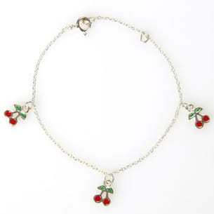 Avec ses trois paires de cerises serties dans l'argent et son fermoir réglable, ce bracelet est un cadeau idéal pour les petites filles.
