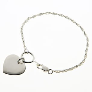 Simple, épuré, ce bracelet en argent avec sa breloque en forme de coeur et sa chaîne torsadée saura s'adapter à tous les poignets.