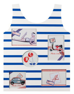 Pour afficher les photos de votre bien-aimé ou de votre petite famille, voici un joli cadre photo au design original : il est inspiré du marcel et des rayures marinières et apporte une touche "bord de mer" dans une pièce.