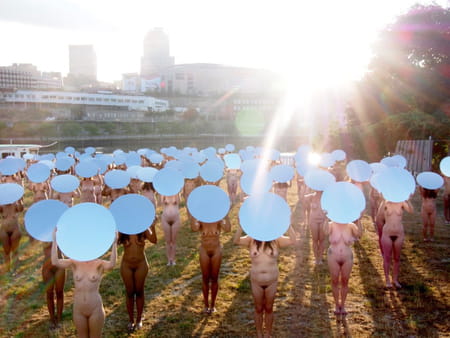 C'est une installation impressionnante qu'a mise en place le photographe Spencer Tunick à Cleveland, dans l'état de l'Ohio, aux États-Unis. Cent femmes volontaires ont posé nues sous son objectif pour protester contre les discours sexistes, discriminatoires et haineux du candidat républicain Donald Trump. En lice pour la présidentielle américaine, Donald Trump multiplie les propos misogynes à l'égard des femmes. Il est réfractaire à l'IVG et peu enclin à laisser les postes de pouvoir à la gent féminine... Spencer Tunick a voulu capturer ces femmes nues, levant des miroirs reflétant le soleil. Le lieu choisi n'est pas le fruit du hasard, au contraire : elles font face à l'endroit où s'est tenue le lundi 18 juillet l'officialisation de l'investiture de Donald Trump en tant que candidat républicain à la Maison-Blanche.