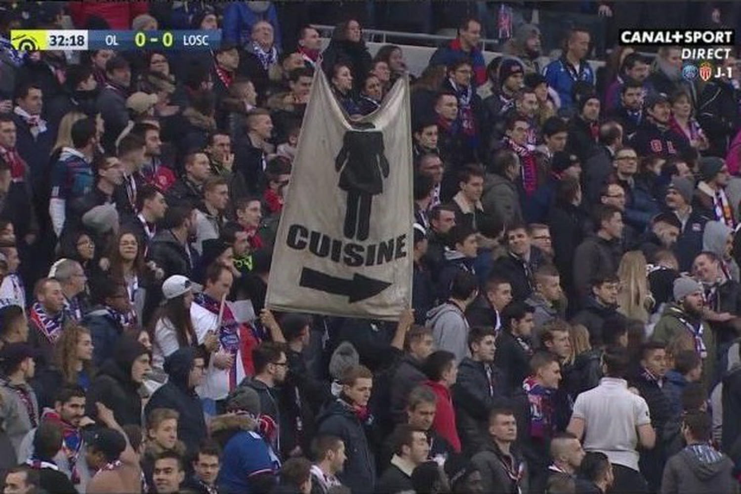 Supporters lyonnais... Pouvez-vous me donner des explications sur cette banderole : les hommes au stade, les femmes en cuisine ? #égalité pic.twitter.com/eo8b43Ipvk