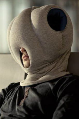 Votre père, ce gros dormeur... Pour lui permettre de faire la sieste où il veut, quand il veut, offrez-lui ce coussin autruche. Au cas où : les deux trous en haut permettent d'y ranger ses mains lors des roupillons piqués sur le bureau. Ingénieux.
