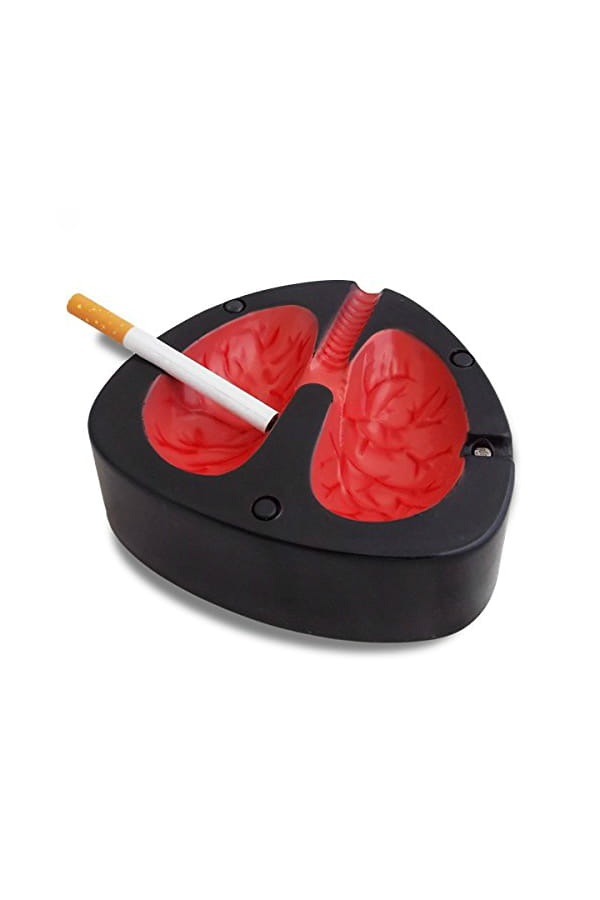 Il ne veut toujours pas arrêter de fumer... Aidez-le avec ce cendrier. A force de voir les poumons se remplir de cendres, il y parviendra peut-être.
