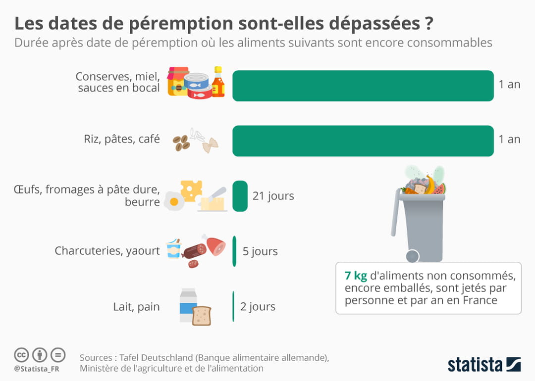 Pour remédier à ce problème de taille, la Banque alimentaire allemande demande un remaniement du système de dates de péremption et de durabilité minimale ("à consommer de préférence avant le") des produits en grande surface, qui peuvent souvent nous pousser à jeter un aliment encore consommable à la poubelle !