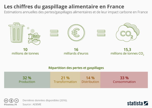 Selon les chiffres de l'Organisation des Nations unies pour l'alimentation et l'agriculture, "14% de la production alimentaire mondiale se perdrait entre la ferme et la vente au détail", comme l'indique l'agence Statista.