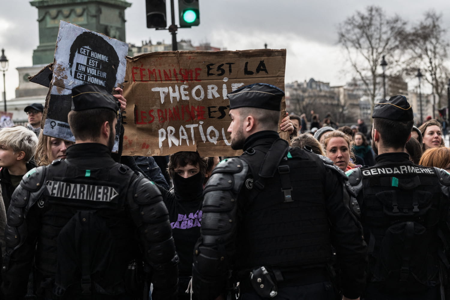 La veille de la Journée internationale des droits des femmes, des cortèges de manifestants se sont retrouvés bloqués dans les rues de Paris par les forces de polices, entraînant quelques arrestations musclées. Les images des interventions policières ont circulé sur les réseaux sociaux et ont provoqué de nombreuses réactions de la part du gouvernement. La secrétaire d'État à l'Égalité homme-femme, Marlène Schiappa, a dénoncé dans un tweet: "Toutes les femmes doivent pouvoir manifester pacifiquement pour faire respecter leurs droits !", avant de préciser qu'un rapport avait été demandé par le ministre de l'Intérieur Christophe Castaner sur la façon dont se sont déroulés les événements du 7 mars. Caroline de Haas, militante du collectif #NousToutes s'est indignée, le 8 mars : "Hier soir, des féministes ont été frappées par les forces de l'ordre alors qu'elle manifestaient - notamment - contre les violences sexuelles. Emmanuel Macron, Christophe Castaner, Marlène Schiappa, comment avez-vous pu donner des consignes pareilles ?". Même réaction pour Anne-Cécile Mailfert, présidente de la Fondation des femmes.