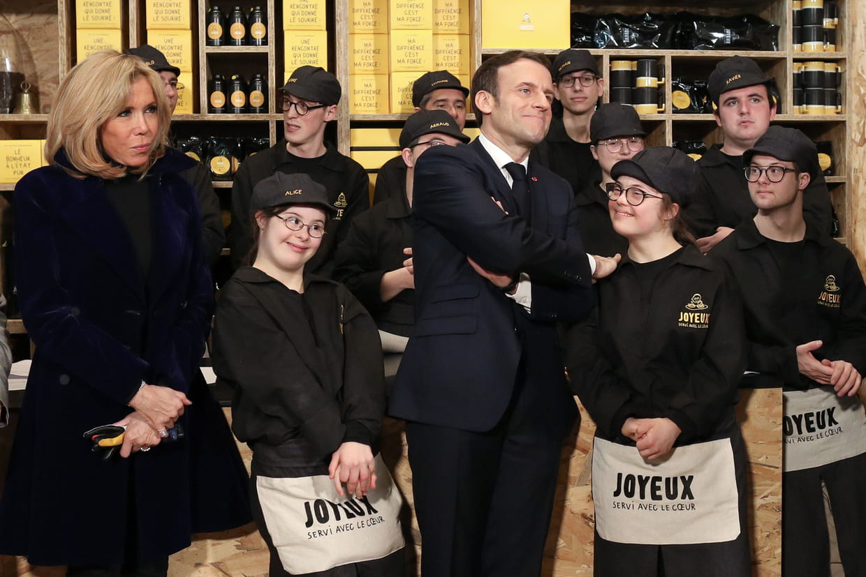 Emmanuel et Brigitte Macron s'imprègnent de l'atmosphère chaleureuse du Café Joyeux