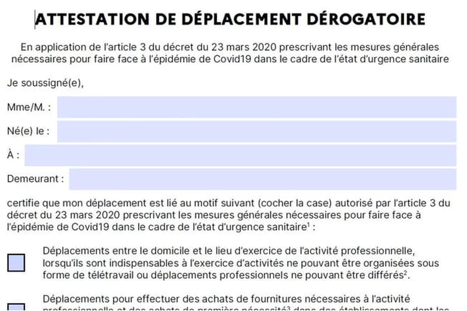 Pour utiliser la version numérique, il faut remplir le formulaire sur son smartphone en indiquant, comme sur la version papier :