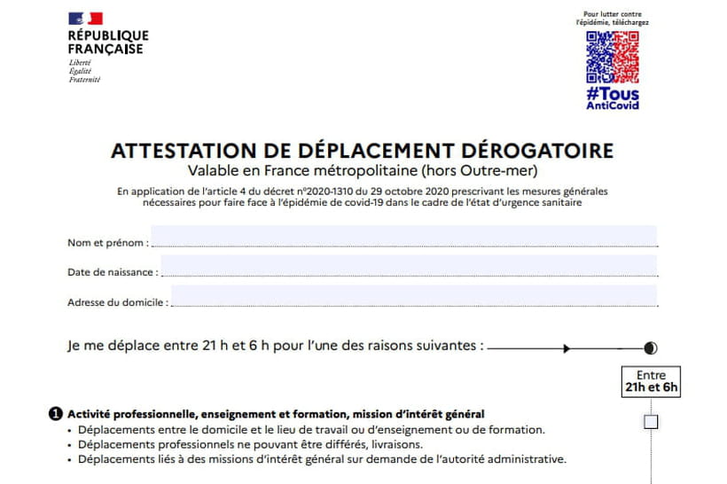 Ce formulaire 2.0 sous format PDF doit être présenté aux forces de l'ordre, qui scannent l'attestation directement sur votre écran à l'aide d'un QR code. L'heure à laquelle le document est édité est également accessible aux policiers, afin d'éviter que des personnes remplissent l'attestation uniquement à la vue d'un contrôle de police.